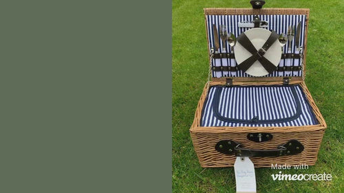 Take some time to enjoy all that our beautiful country has to offer with this classic navy and white striped fitted picnic hamper for 2 people.