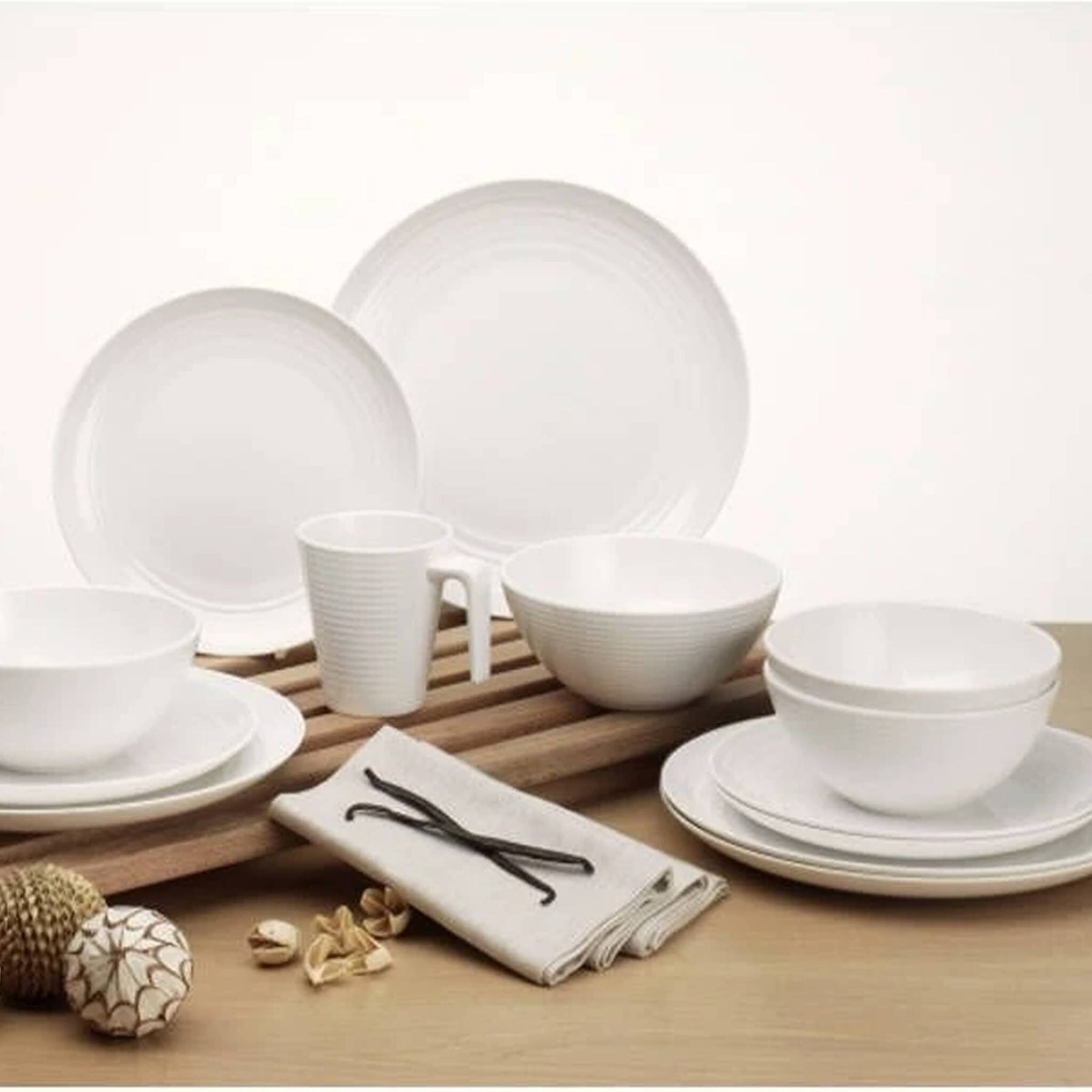 This set of four melamine bowls is perfect to complete any table setting. With a neutral vanilla hue, the linear design of these plates is tastefully complemented by a shine finish, making them both beautiful and durable.